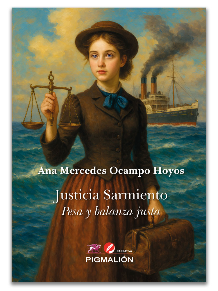 Justicia Sarmiento, pesa y balanza justa, es una novela sobre el coraje, la huida y la sanación. Justicia, una joven judía española, emprende un viaje inesperado tras perder a su madre y a su hermano en la epidemia de cólera de 1888. Junto a su padre Emeramo, un humilde médico acusado injustamente por la muerte del hijo de un poderoso, escapan hacia América del Sur, convencidos por Jadier, un trotamundos que les promete un futuro en Nueva York y estudios de medicina para Justicia.