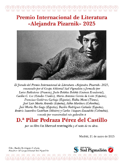 El Premio Internacional de Poesía “Alejandra Pizarnik” lo promueve el Grupo Editorial Sial Pigmalión, coincidiendo con el vigésimo octavo aniversario de la fundación del grupo, para premiar a autoras que hayan destacado como poetas.